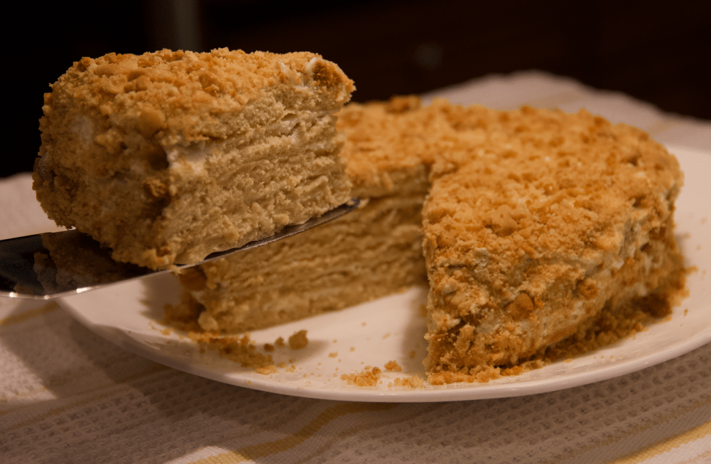 When I was forced to come back to the US due to COVID-19, there was one dessert that I knew I had missed the chance to try – medovik! I was in Germany for the semester and just a short plane’s ride away was my chance to finally try this elegant (but also monstrous-looking) dessert that I had only previously seen on Youtube.