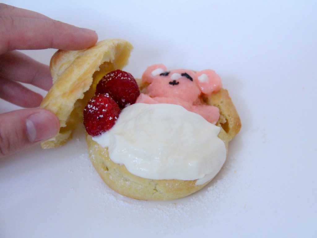 Looking for a delicious treat to start off 2021? Well, look no further! Start off the New Year with these RaspBEARy shortcake custard cream puffs (or choux puffs, to be more fancy)! I naturally wake up super early, so I couldn’t make it all the way to midnight on New Year’s eve. Hence, I decided to bake something that represented me as a person, a sleepy human being on the night of New Year’s.
