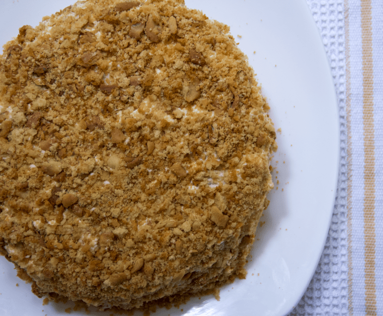 Cake Layer Ingredients: 4 Tbsp (1/4 cup) honey 1/4 cup granulated sugar (optional but helps) 2 Tbsp unsalted butter 2 large eggs, room temperature and beaten with a fork 1 tsp baking soda 2 cups all-purpose flour Cream Layer Ingredients: ¾ cup heavy whipping cream 1 tbsp honey or sugar or both 1 tsp vanilla…